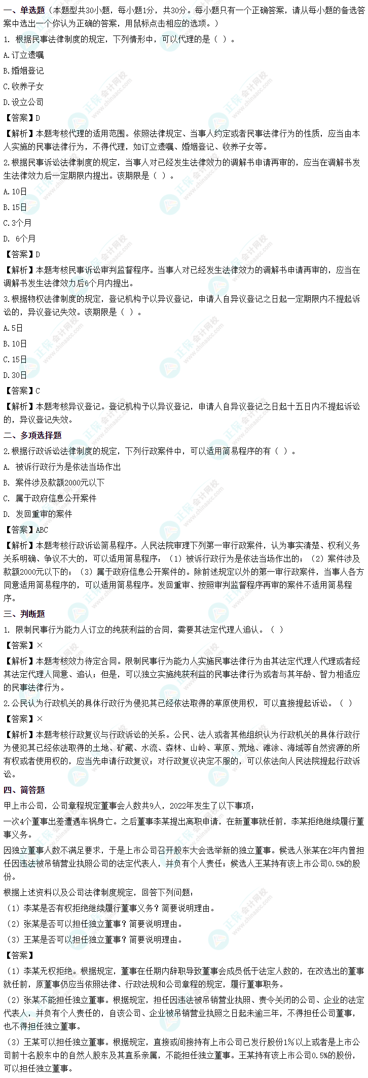 2022年中级会计师《经济法》科目延期考试已结束,大家考得怎么样?2022中级会计师《经济法》科目延期考试试题还记得吗?想对答案吗?正保会计网校为大家整理了部分2022年中级会计职称《经济法》科目延期考试试题(考生回忆版)及参考答案!供广大考生参考!现在让我们一起来看一下吧!