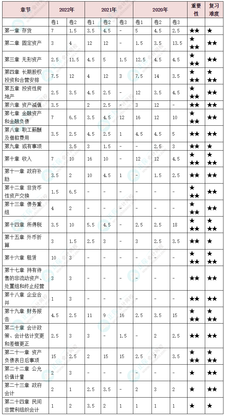 2023年中级会计职称教材预计3月份公布,很多同学现在就开始学习了,这是非常明智的决定,但是没有教材和大纲做为依据同学们可能不太清楚哪些是重点章节需要重点学习!网校为了帮助同学们解决难题,特地帮同学们整理了《中级会计实务》各章近三年分值分布及复习难度,供同学们参考使用!