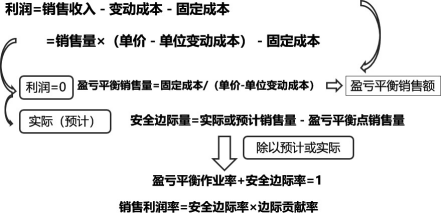 第八章 成本管理 | ★★★本量利分析 | 单位边际贡献=单价-单位变动成本=单价×边际贡献率 边际贡献率=边际贡献总额/销售收入=单位边际贡献/单价 【提示】上述核心的公式必须记住,后面的公式可以由此推导得出。如计算保本点,令利润=0 即可;如计算特定的利润,把等式左面用特定的数值替代即可。 【应用】1.盈亏平衡分析;2.安全边际量(率)的计算;3.产品组合盈亏平衡分析;4.目标利润的分析;5. 以成本为基础的产品定价方法(全部成本费用加成定价法、保本点定价法、目标利润法、变动成本定价法)。 |