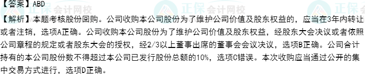 【多选题】(2022)2022年5月,甲上市公司为了维护公司价值及股东权益,经股东大会授权,董事会会议拟决议依法收购本公司股份。下列关于本次收购的表述中,正确的有( )。