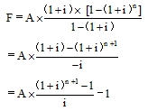 式中各项为等比数列,首项为A(1+i),公比为(1+i),据等比数列的求和公式: