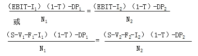 快速 求解 | 无优先股 EBIT= | 有优先股 用I=借债利息+DP/(1-T) 套用左式 |