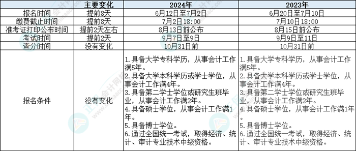 2024年中级会计报名简章终于终于公布啦!新考季报名相关政策有哪些变动?一张表格带你弄明白!