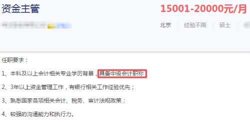 根据各大招聘网站的招聘需求可以看出,现在企业不再仅仅需要一个能做账的会计了,更多的企业希望自己的会计人员能够协助公司进行年度预算编制和预算调整工作,而且岗位薪酬也较为可观,一般在8000-10000左右,若是持有中级会计职称证书,以北京地区为例,月薪可达10000-20000。