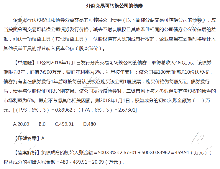 正保会计网校特为大家整理了2019年中级会计职称考试《中级会计实务》的知识点分离交易可转换公司债券,希望可以给大家的备考有一定的帮助!祝大家学习愉快!