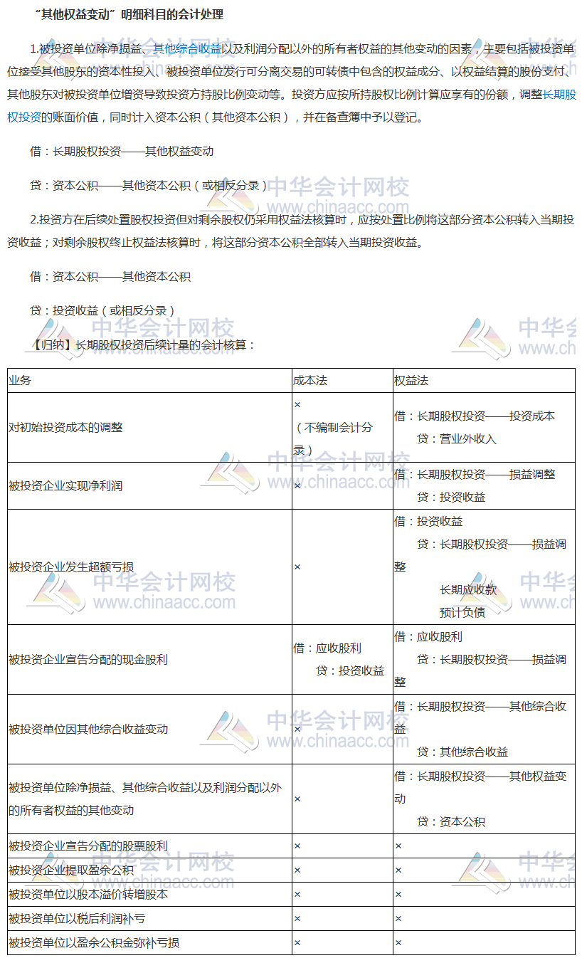 知识点十六 “其他权益变动”-明细科目的变动处理
