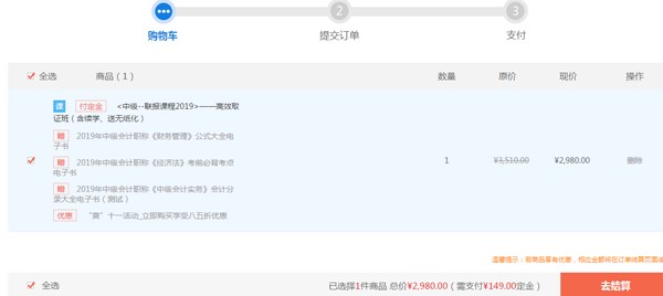 双·11这么多的优惠,那么如何购买才能拿到最大的优惠呢?小编为大家做了省钱详细攻略,我们一起来看看吧!↓↓↓以购买中级会计师高效取证班为例。