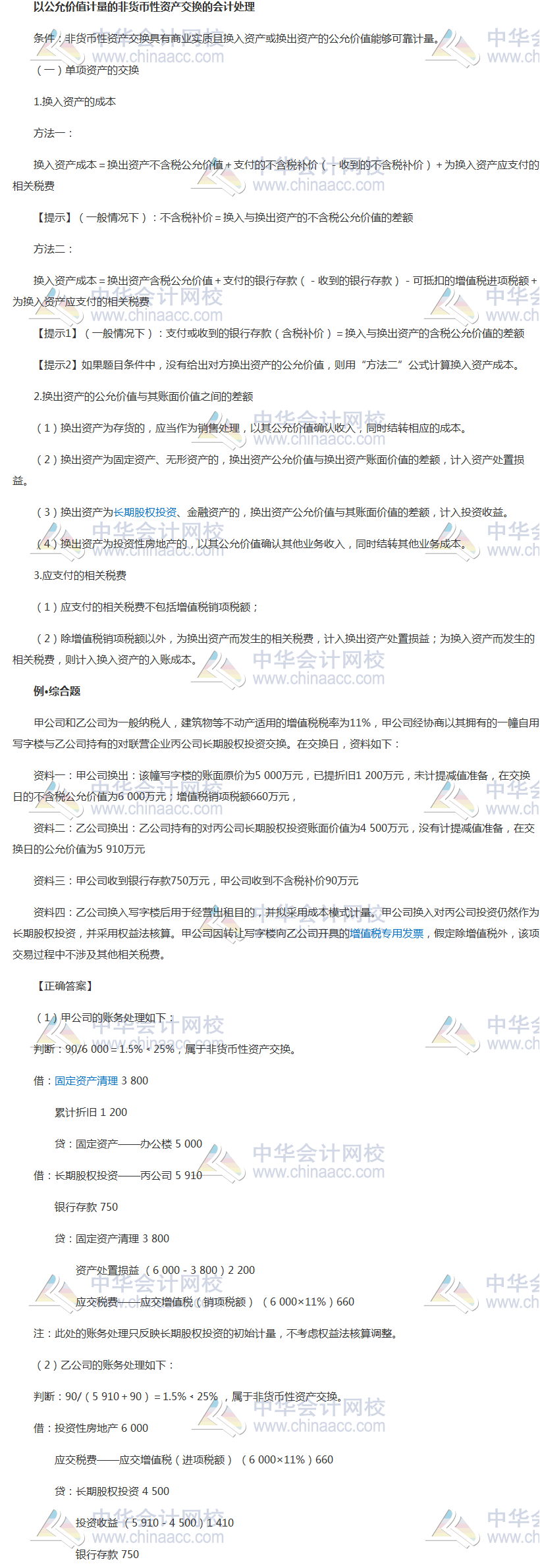 知识点二十三 以公允价值计量的非货币性资产交换的会计处理