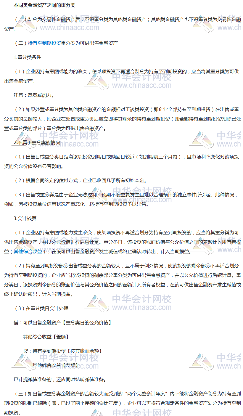 知识点三十 不同类金融资产之间的重分类