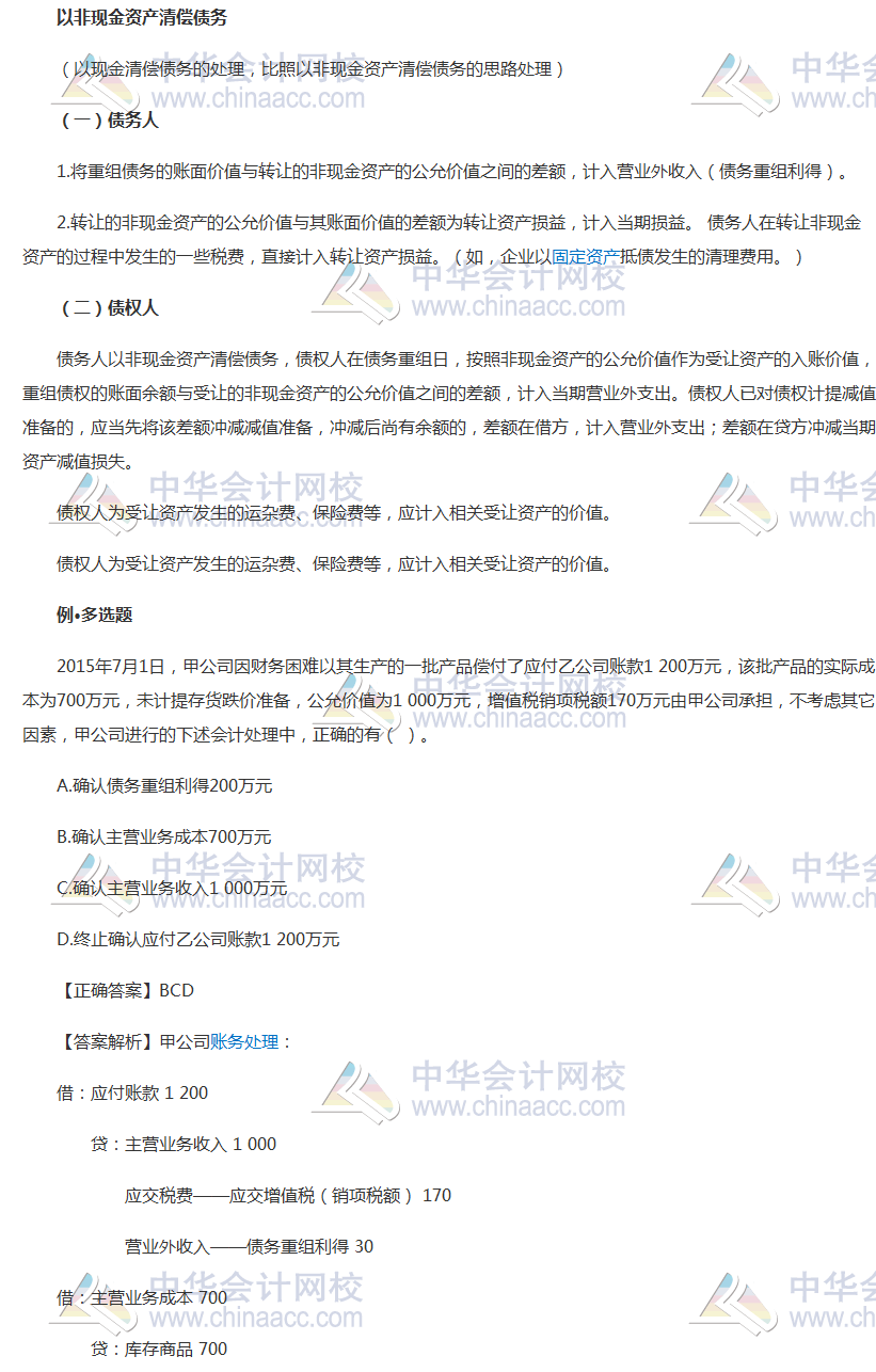 知识点四十 以非现金资产清偿债务