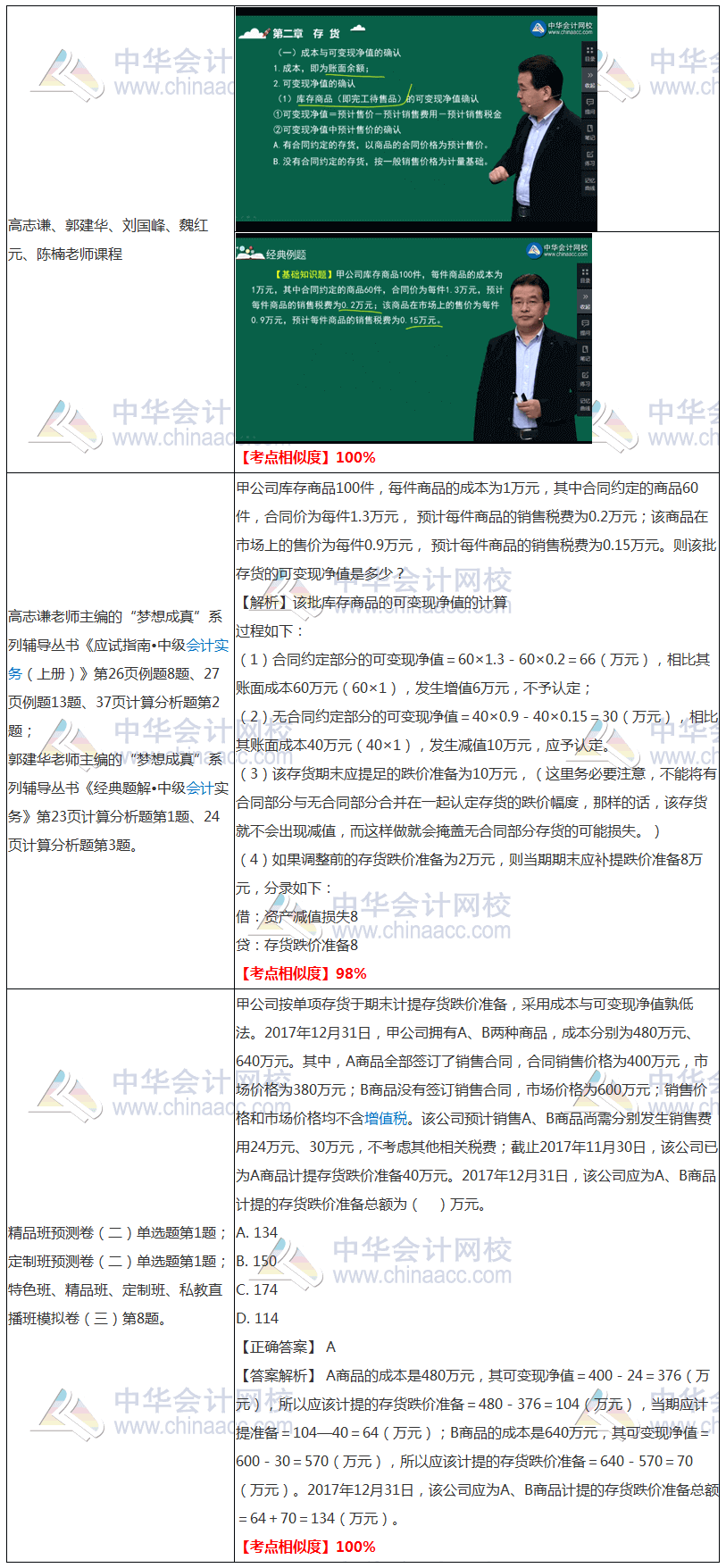 【点评】本题考核“存货跌价准备的计提”,该题目所涉及知识点在下列正保会计网校(www.fawtography.com)2018年中级会计职称《中级会计实务》辅导中均有体现,(其中以高志谦老师授课视频为例):