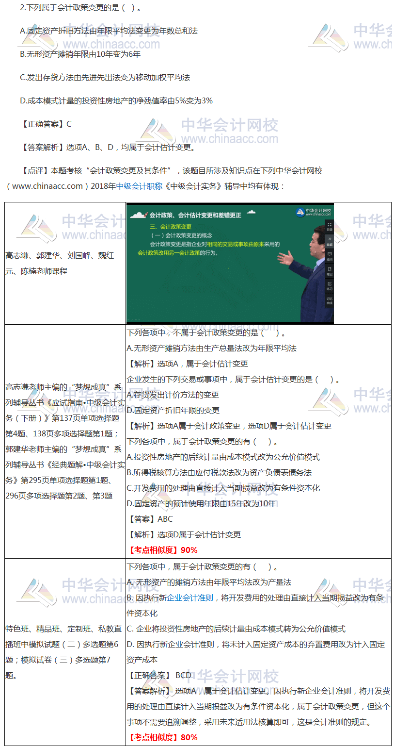 【点评】本题考核“会计政策变更及其条件”,该题目所涉及知识点在下列正保会计网校(www.fawtography.com)2018年中级会计职称《中级会计实务》辅导中均有体现,(其中以高志谦老师授课视频为例):