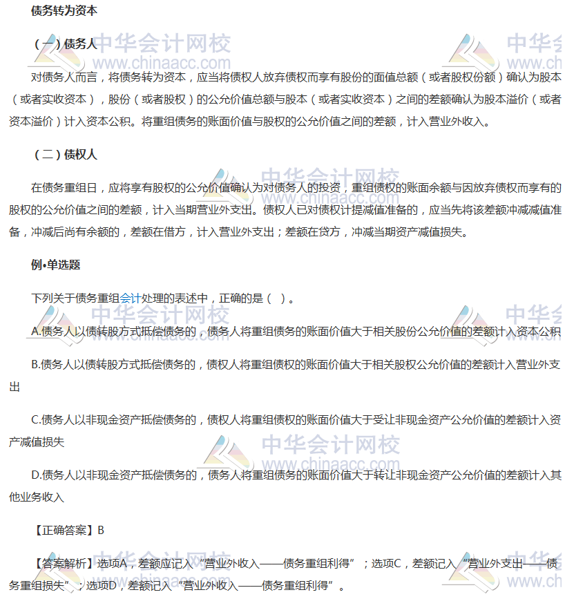 正保会计网校特为大家整理了2019年中级会计职称考试《中级会计实务》的知识点债务转为资本,希望可以给大家的备考有一定的帮助!祝大家学习愉快!