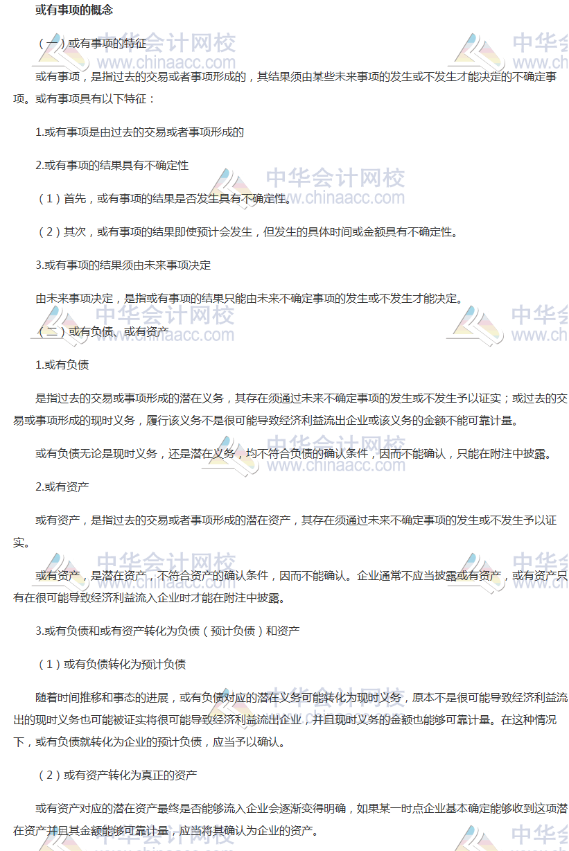 知识点四十三 或有事项的概念