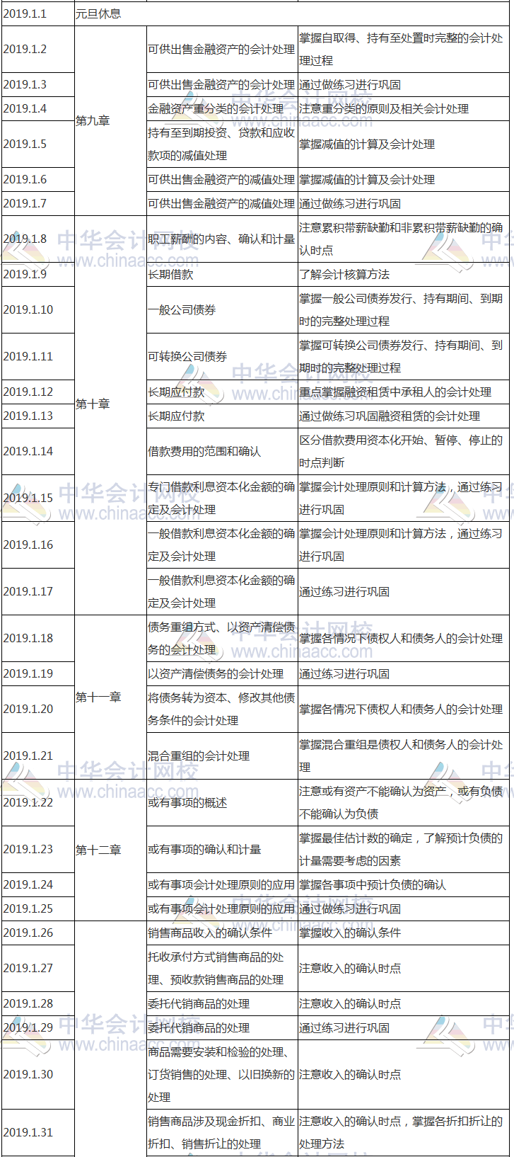 注:已报网校2019年中级会计职称高效取证班、精英孵化班、VIP签约特训计划的同学,可在“我的网校我的家”看到、或者由班主任/助教提供更详尽的计划表,如与本表不一致,请以您购课后获得的学习计划为准。