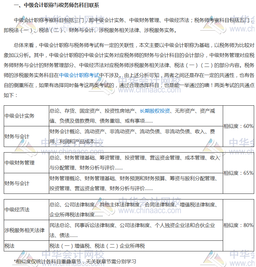 一、中级会计职称与税务师各科目联系
