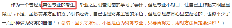比如网校论坛一个英语专业的考生做到财务主管后因为缺乏自信来考中级职称,而像这样非财务专业的学员网校还有很多。