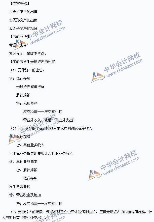 我们一起来学习2013年中级会计职称《中级会计实务》高频考点:无形资产的处置。本考点属于《中级会计实务》第六章无形资产第四节无形资产的处置的内容。