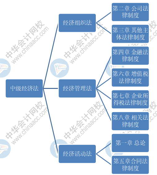 经济法与我们的日常工作和生活息息相关,因此我们在学习中级经济法时,也要转变我们的应考思路,先从教材的整体框架来进行把握。按照教材的编排,我们对经济法作如下框架整理:
