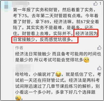 1、认为经济法比较难!是因为低估了经济法,备考用时最少。