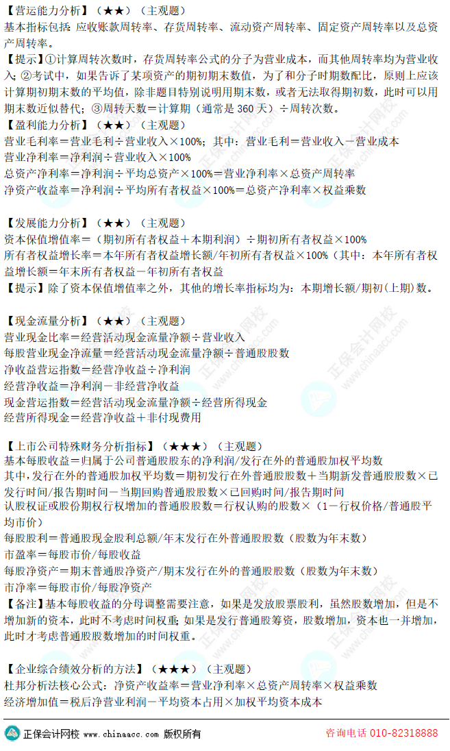 财务管理 第十章 财务分析与评价 必备公式及例题