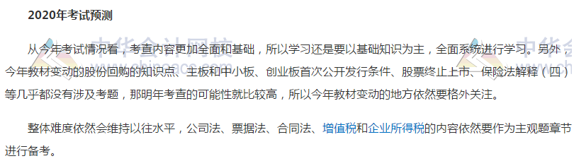 了解更多经济法教材变化预测,点击这里>>2020年中级会计职称《经济法》教材变动预测<<