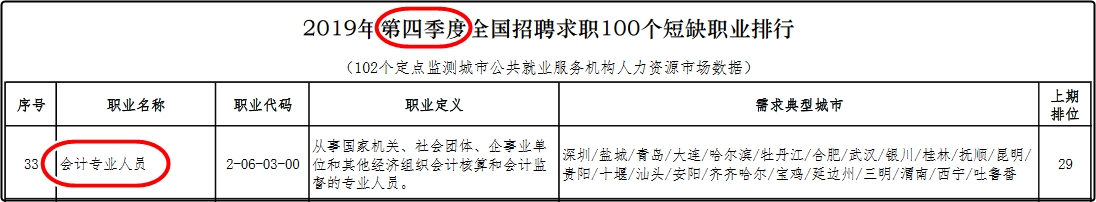 而且人社部发布2019年第四季度全国招聘求职100个短缺职业排行,其中会计专业人员排行第33名。可以说会计人才紧缺,如果有了中级会计师证书,那么你在职场上发光发亮的机会就更多了。