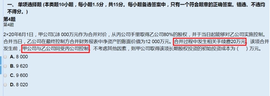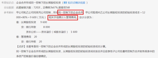 3.同一控制下的企业合并中,合并方为企业合并支付的审计费用应当计入当期损益。( )【答案】√【解析】合并方发生的审计、法律服务、评估咨询等中介费用以及其他相关管理费用,于发生时计入当期损益。【点评】本题考核“同一控制下企业合并发生的中介费的处理”知识点。该题目所涉及知识点在正保会计网校2021年中级会计职称《中级会计实务》辅导中均有体现:[尊享无忧班]高志谦老师基础精讲第五章第04讲