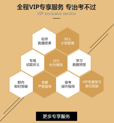 中级会计职称VIP签约特训计划实行30人小班管理,学管督学团队提供入学回访、学员档案建立、学习计划制定、日常学习监督提醒、学习激励、定期学习数据反馈等学习管理服务,从入学开始到考试结业建立全程督学系统,有力保障学员的学习效果。
