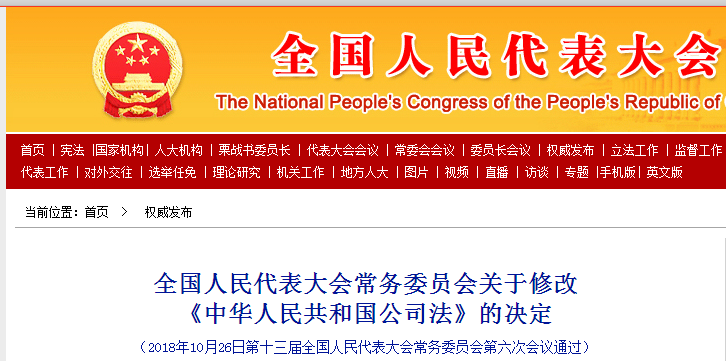 全国人民代表大会常务委员会关于修改《中华人民共和国公司法》的决定