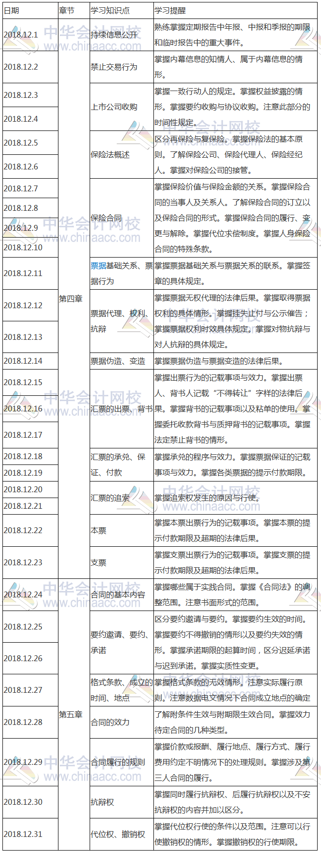 新考季已到来,中级会计职称备考该好好规划一下了。正保会计网校为广大考生规划了2019年中级会计职称《经济法》学习计划表,按照计划,大家现在应该学习到第四章了。进入12月,整个月该如何安排学习?