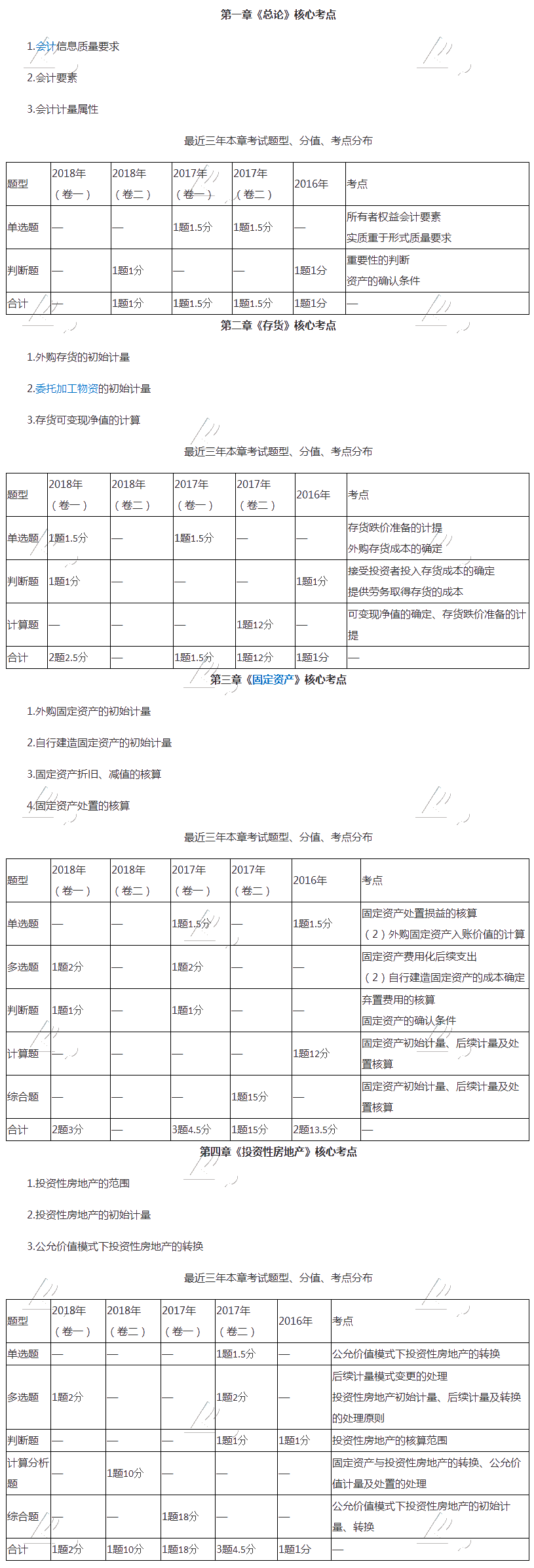 ——重要章节及分值占比——