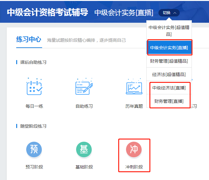 2、将辅导切换到“私教直播班的[直播]”,点击“冲刺阶段”
