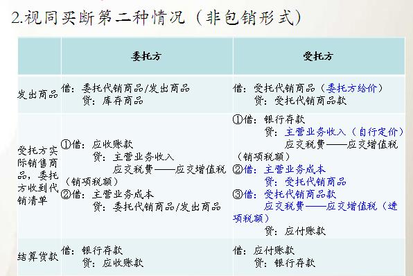 详细问题描述: 包销和非包销的分录?非包销就是买断吗? 答疑老师回复: 视同买断包括包销和非包销两种形式。具体处理: 包销形式下,发出商品时,委托方通常就确认收入结转成本了,和正常销售商品的处理一样;受托方收到商品按购进处理,对外销售时也做正常的销售处理。