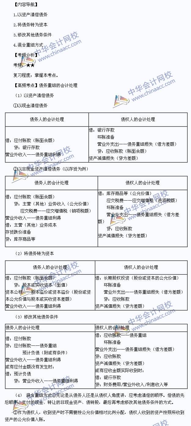 我们一起来学习2013年中级会计职称《中级会计实务》高频考点:债务重组的会计处理。本考点属于《中级会计实务》第十二章债务重组第二节债务重组的会计处理的内容。