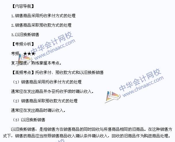 我们一起来学习2013年中级会计职称《中级会计实务》高频考点:托收承付、预收款方式和以旧换新销售。本考点属于《中级会计实务》第十四章收入第一节销售商品收入的确认和计量的内容。