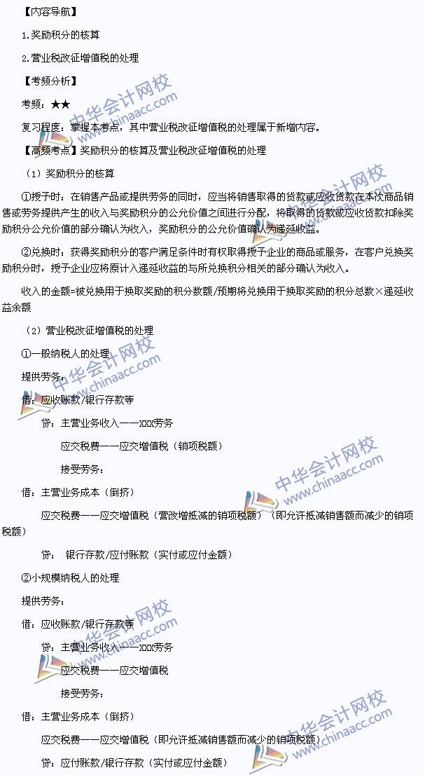 我们一起来学习2013年中级会计职称《中级会计实务》高频考点:奖励积分的核算及营业税改征增值税的处理。本考点属于《中级会计实务》第十四章收入第二节提供劳务收入的确认和计量的内容。