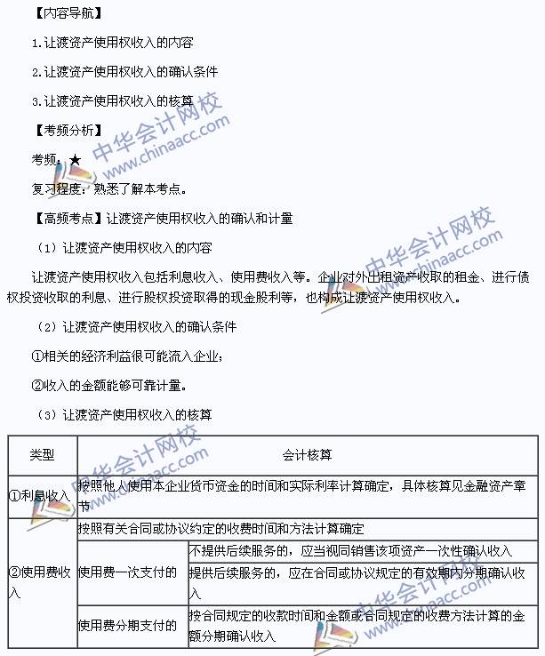 我们一起来学习2013年中级会计职称《中级会计实务》高频考点:让渡资产使用权收入的确认和计量。本考点属于《中级会计实务》第十四章收入第三节让渡资产使用权收入的确认和计量的内容.