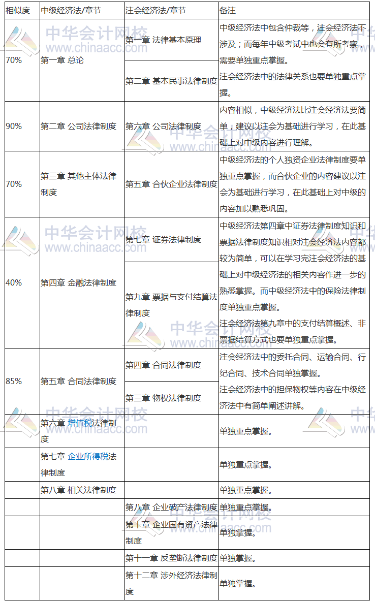 以下是中级会计职称《经济法》和注会《经济法》的对比内容: