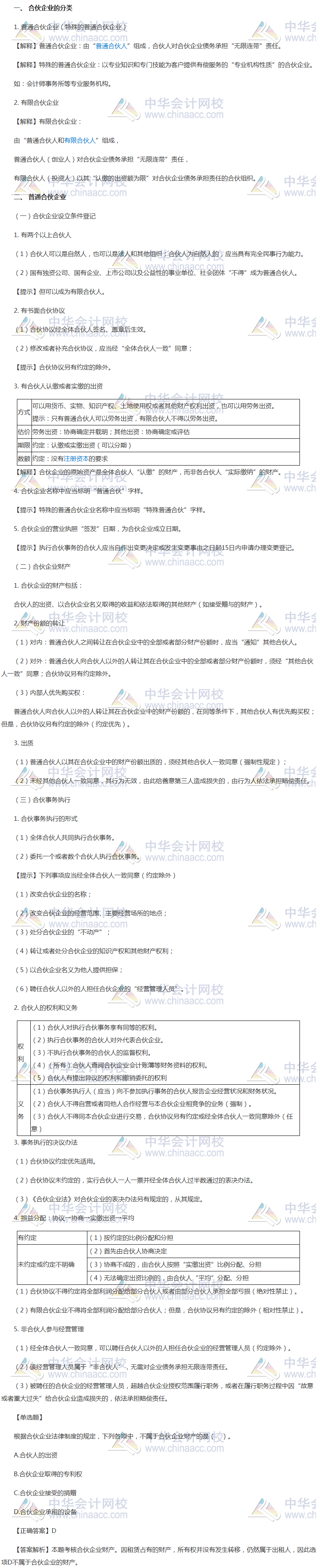 知识点二 合伙企业的分类、普通合伙企业设立条件、财产、合伙事务执行