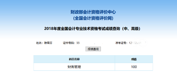 有时候人确实是弹性的,不逼一下自己,永远不知道自己有多大能力。直到去年,看着孩子学习,觉得自己也应该给孩子一个努力的榜样,所以下定决心考中级会计。很开心,在网校老师的帮助下,去年通过了会计实务93分,经济法80分,今年满分通过了财务管理。