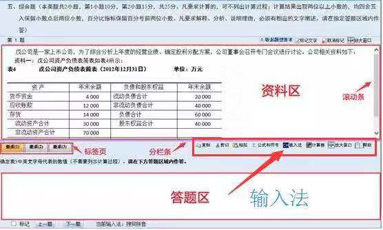 在答主观题时,即计算分析题、简答题、综合题答题时,我们在界面右下方可以看到“输入法”按钮: