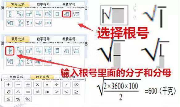 步骤2:选择分子分母按钮,输入根号里面的分子和分母