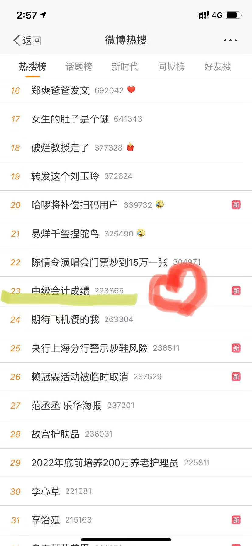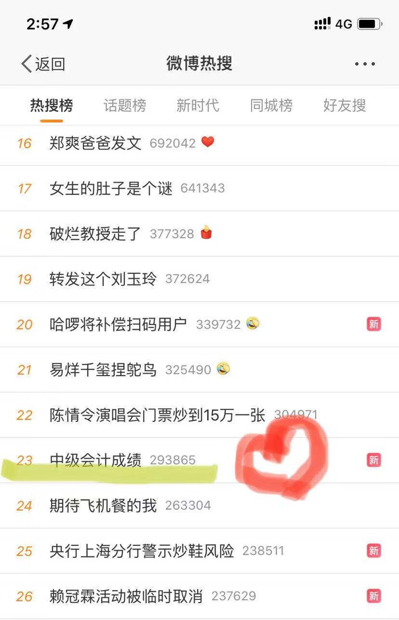 我大160万的考生甚是强大呢,遥记一个多月前中级会计职称考试时,也是热搜不断呢,送上我的小心心~