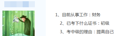常年在做着基层的会计工作,复杂繁琐而且忙碌,可是却迟迟不敢开口提升职加薪,因为你怕一提老板就会说:“没考下中级职称凭什么升职加薪?”如果有证书在手,你就可以尝试主管级别的会计工作了,这个时候,向老板提升职加薪,也更有底气了。即使老板拒绝,你也更有资本去找自己心仪的工作了。 相信有很多跟他们想法一样的考生也在默默努力着吧 ↓↓↓