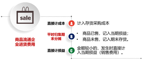 4.商品流通企业进货费用,包括运输费、装卸费、保险费可归属于采购成本的费用,按照以下情况进行处理: