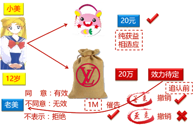 “纯获利益”的合同或者与其年龄、智力、精神健康状况“相适应”而订立的合同,不必经法定代理人追认,合同当然有效。