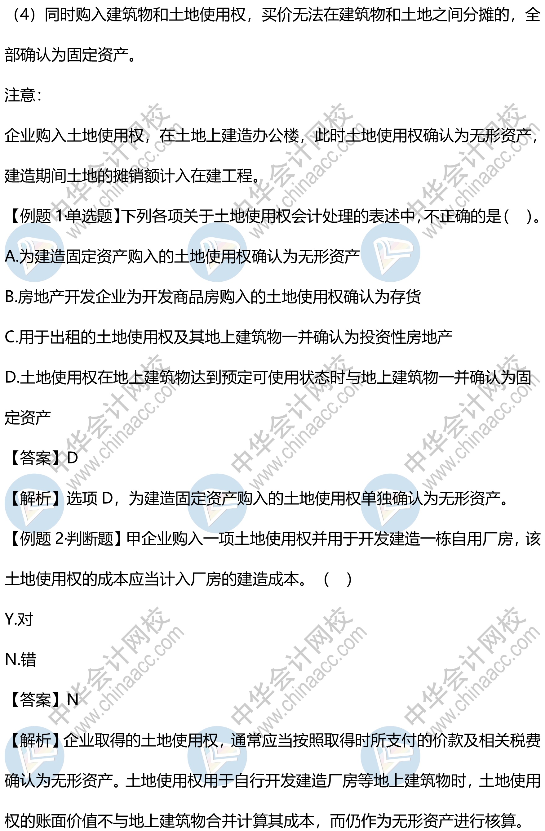 2020《中级会计实务》易错易混点第2点: 企业取得土地使用权的确认