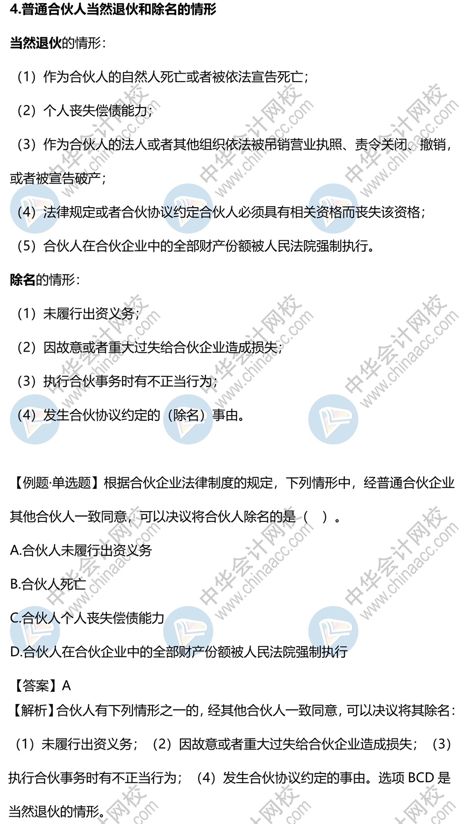 中级《经济法》10大易错易混第4点:普通合伙人退伙和除名的情形