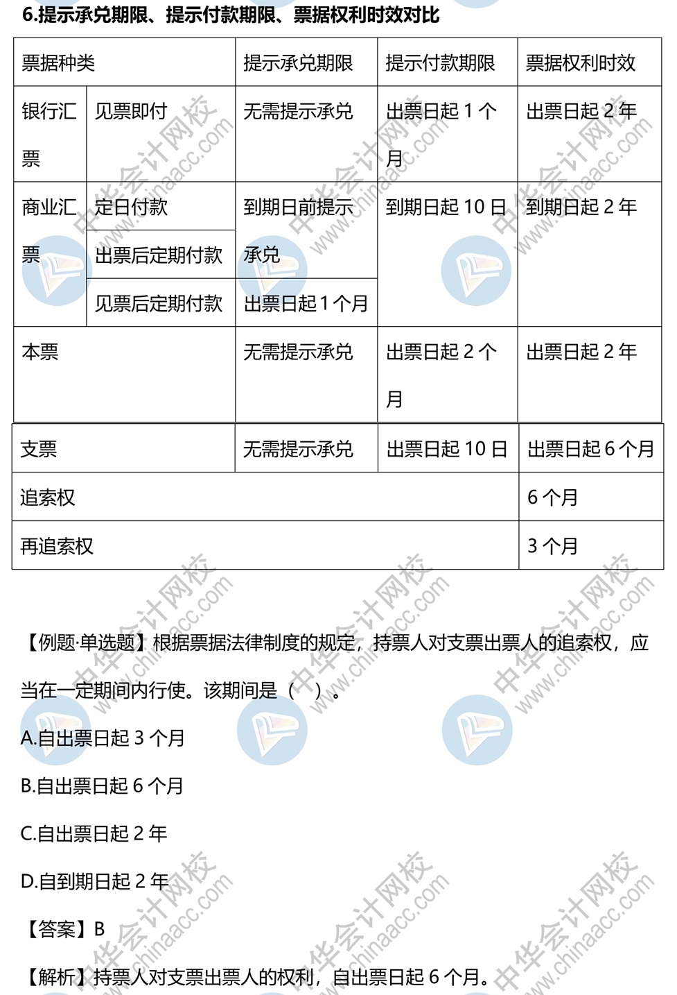 中级《经济法》10大易错易混第6点:提示承兑、付款期限等对比